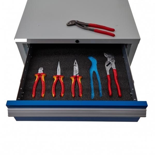 1. it is thick and can fill the full depth of the tool drawer, this is an engineering control preventing the storage of additional items on top of the foam ensuring things stay neat.
